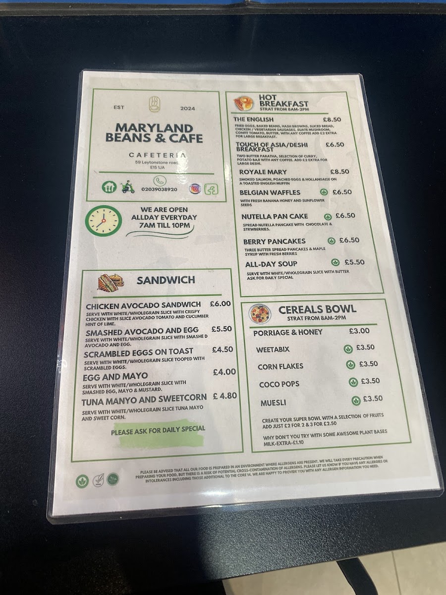 For lighter sweet options, the menu includes items such as waffles with forest berries and sweet berry pancakes. Bean nachos are also part of the menu, providing a range of savory snacks suitable for casual orders or takeaway.